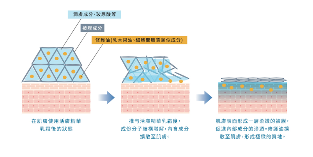「融合滲透乳化技術」是讓成份分子結構更進化的乳化技術。